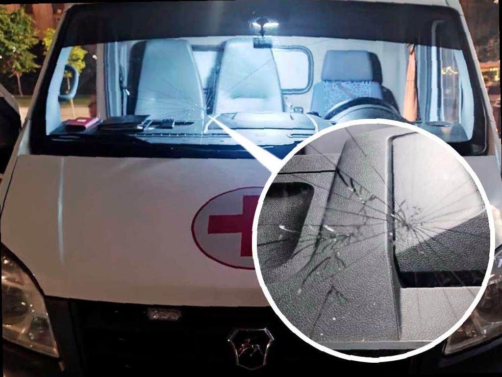 Однако, когда скорая уже готовилась уехать, мужчина подошел к машине скорой помощи, начал бить по стеклу и колесу. В результате стекло не выдержало яростного напора неадекватного мужчины.
