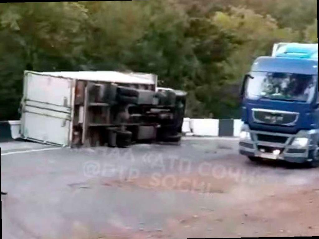 Сегодня на федеральной трассе А-147 «Джубга – Сочи» в районе поселка Мамедова Щель произошла авария с участием грузовика. По предварительным данным, водитель не справился с управлением на крутом повороте и машина перевернулась, ударившись о бетонное ограждение.