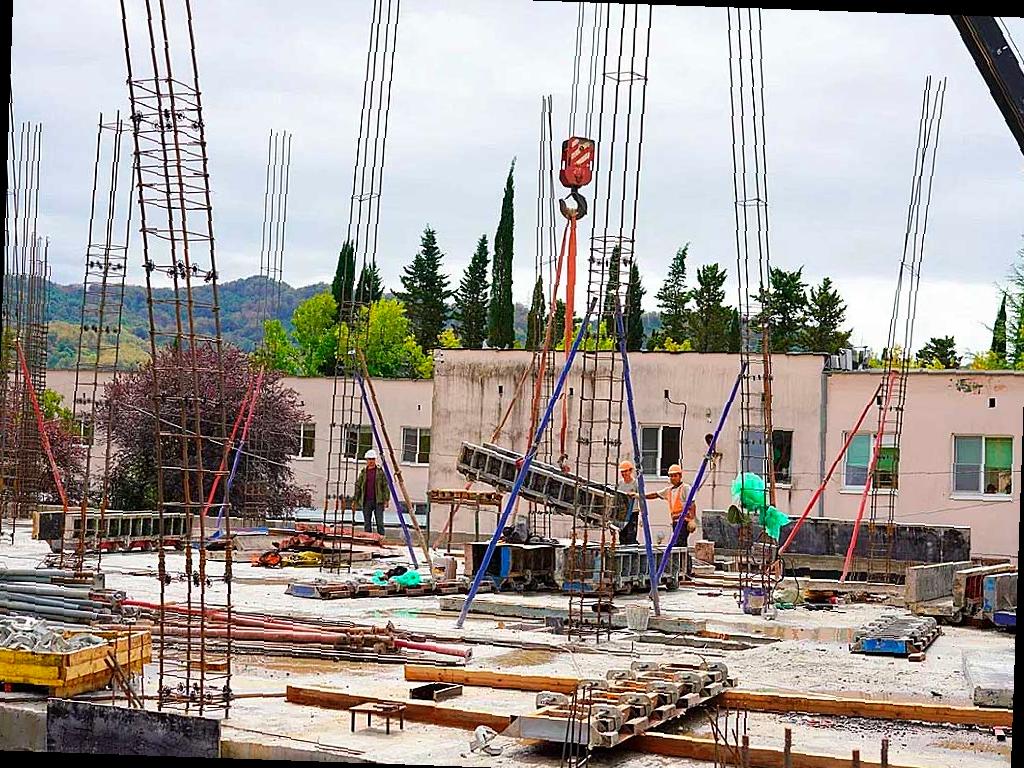 Строительство проводится в рамках национального проекта «Молодежь и дети». Сейчас специалисты устанавливают монолитный каркас здания. В работах участвуют 20 специалистов и 8 единиц техники.
