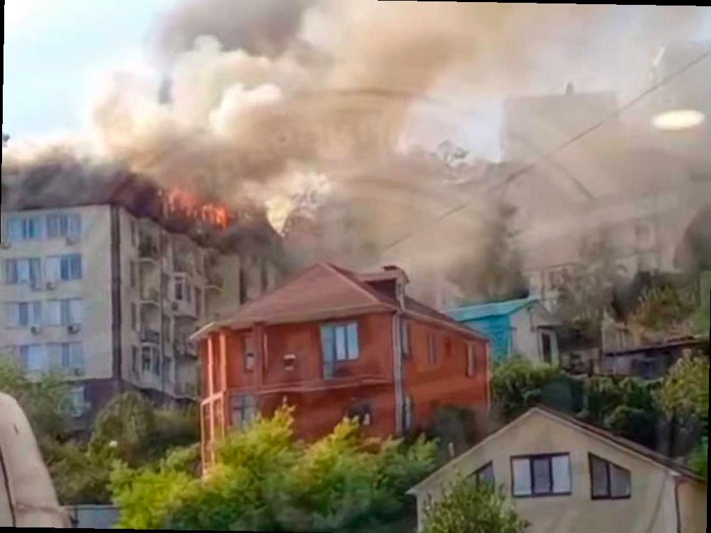 В настоящее время происходит крупный пожар в многоэтажном жилом доме на улице Альпийской в Завокзальном микрорайоне Сочи. Густой дым начал идти с мансардного этажа около часа назад, а пламя уже вырвалось наружу, охватив крышу здания.