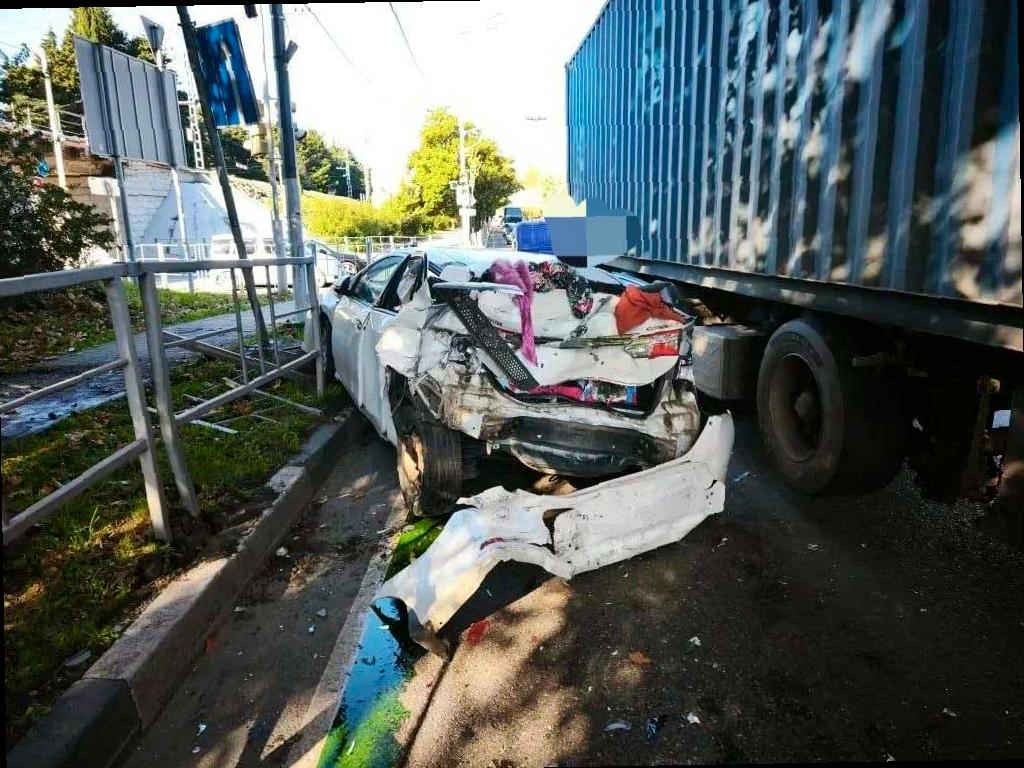 Сегодня днём на перекрёстке в посёлке Лазаревское произошло ДТП с участием грузовика и легковой машины.