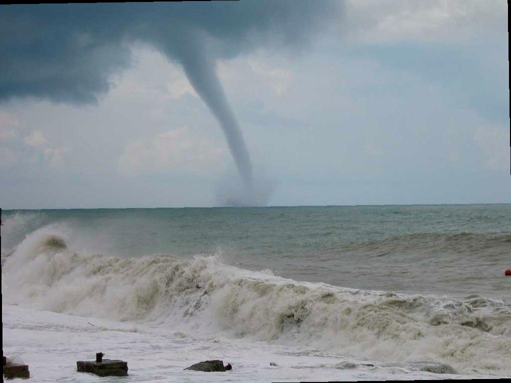 Также сегодня до конца дня, ночью и утром у побережья от Магри до Весёлого возможно появление смерчей над морем.