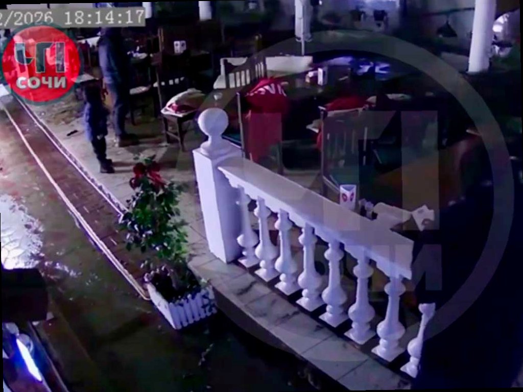 Кадры последствий мощной штормовой волны попали в распоряжение телеграм-канала «ЧП Сочи». Внутри прибрежного кафе запечатлено, как морская вода переливается в зал заведения, смывая все на своем пути.